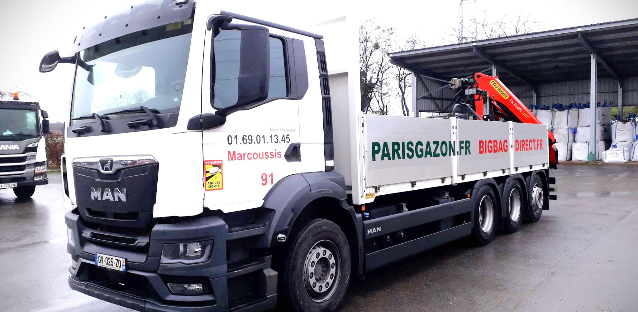 En Ïle-de-France, la livraison est assurée en camion-grue sur palettes sous 48 à 72 heures, à partir de 1m² minimum. Elle s'étend à l'ensemble du catalogue.